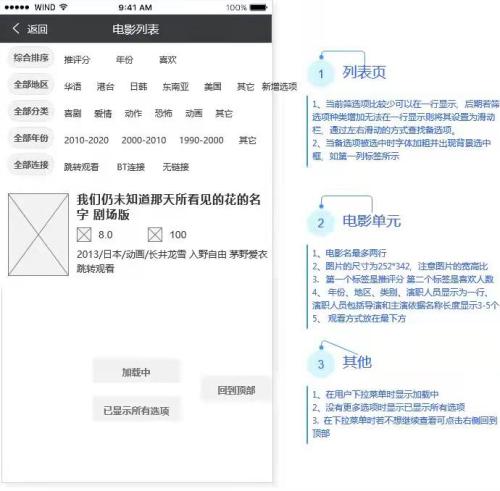 然后年份地区和演员放在一行,会出现超长的问题。包括回到顶部的设计,这是一个非常细节的功能点,脑图中没有出现。但是,如果需要这个按钮的时候,那就要有进一步的思考,还是那句话,这个功能到底需不需要?为什么?这才是产品能力提高的关键。